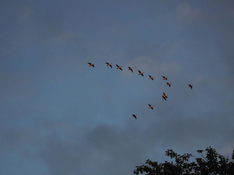I like this shot because it caught the red of the setting sun on the geese's bellies.