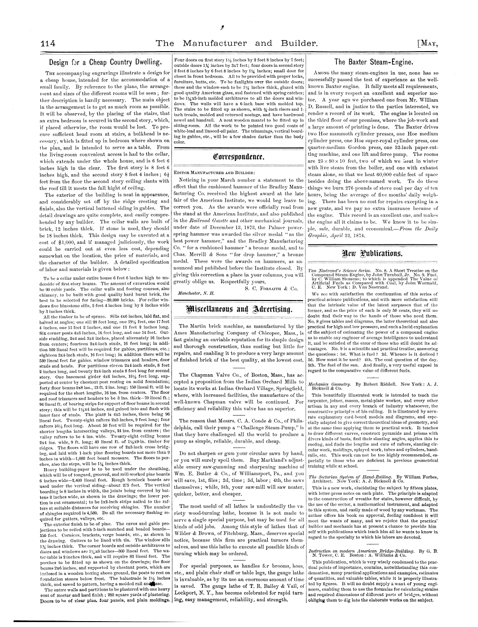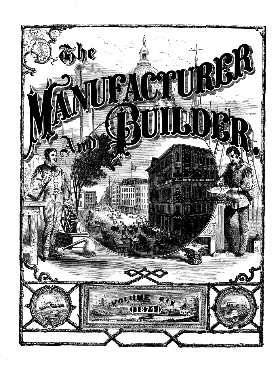 The article at right comes from the May, 1874 issue of The Manufacturer and Builder. Below is the title page.