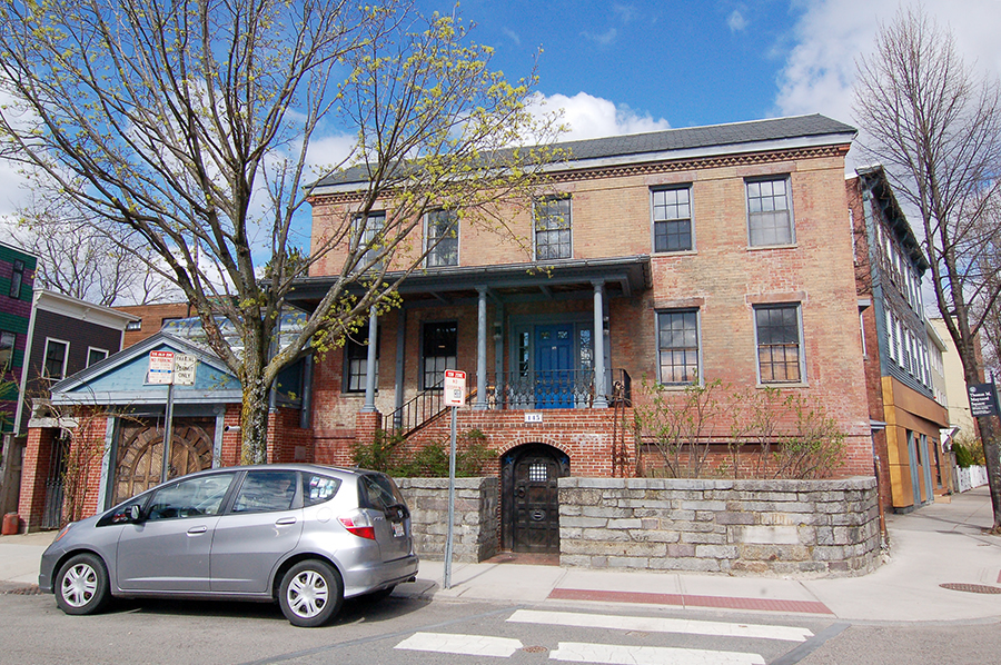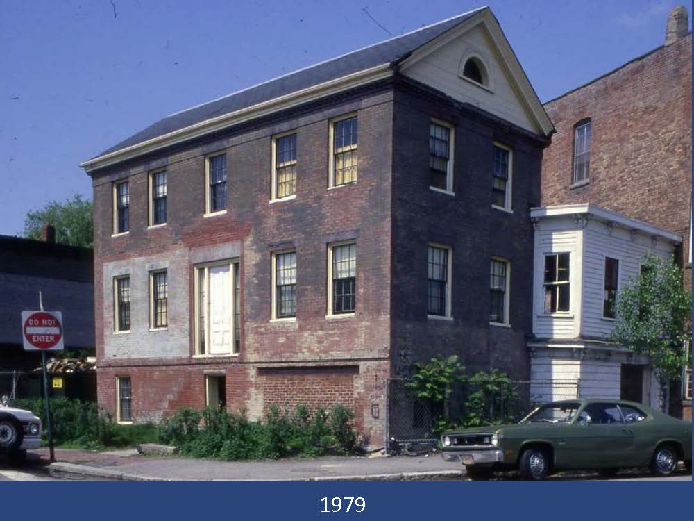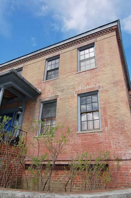 The original house was built in 1839 by brick manufacturer Ivory Sands. It was enlarged with an addition at some forgotten point in time. More additions have been made since 1979. The building comprises uncounted levels that can generally be listed as second floor, first floor, street level, and basement; hence the taxonomy of this webpage.