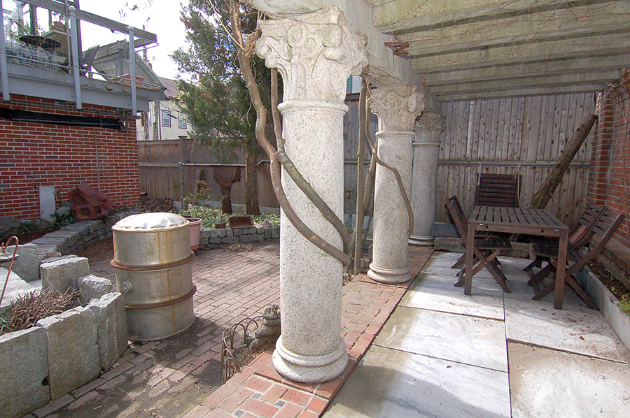 | The six columns are solid granite just over six and a half feet tall with shaft diameters of about fifteen inches. Each weighs about 1,650 pounds. |