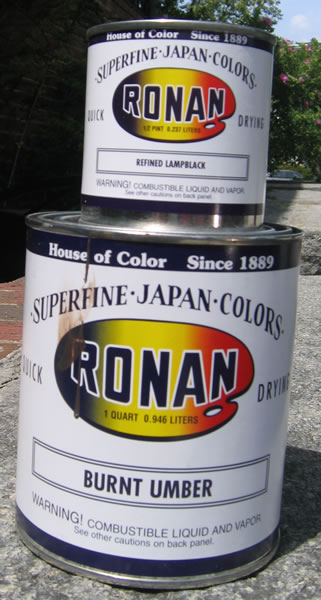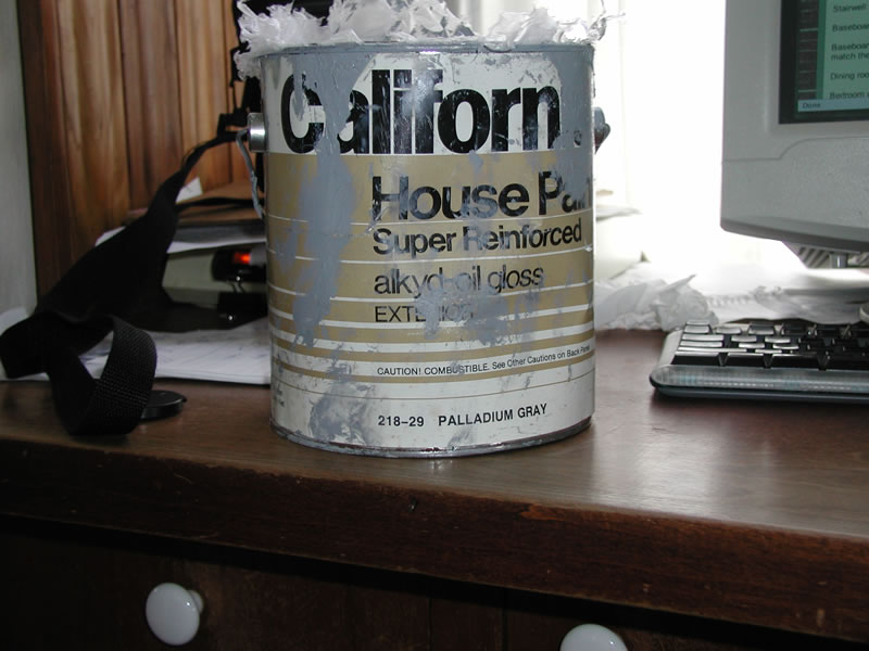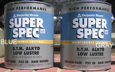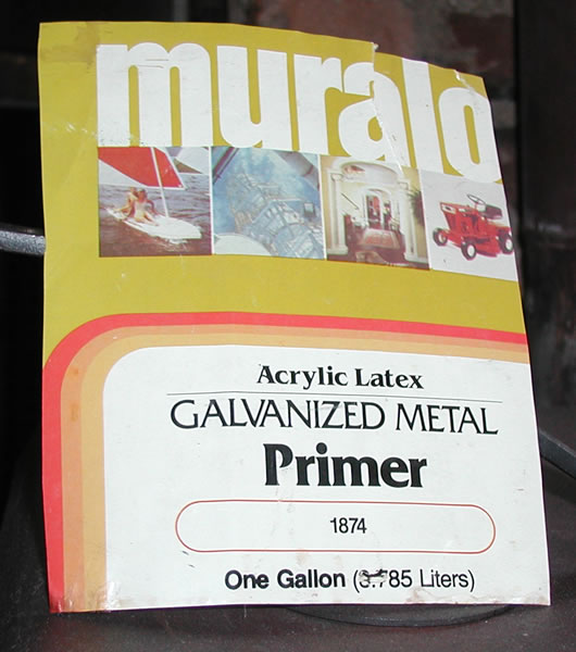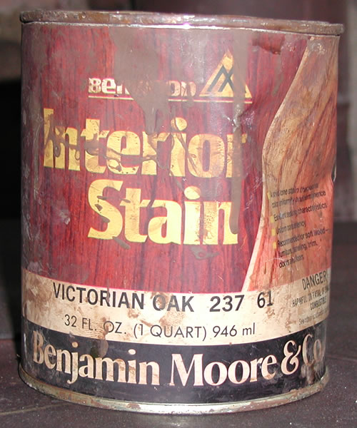 Blue:Front door exterior - Benjamin Moore alkyd High Gloss Impervo "PV-107" Garage (exterior) steel columns and I-beams - California House 218-20 "Palladium Gray" Photo of can West-side clapboard - California House 218-20 "Palladium Gray" Garage doors - Original finish is mix of boiled linseed oil, roofing tar, creosote, thinner, and painter's chuckle; maintained with regular applications of boiled linseed oil Interior - Ben Moore alkyd Impervo "BT-10" Interior oak trim - EF (Environment Friendly) Brown Mahogany, topped with Formsby's Tung Oil and then Butcher's Wax June, 2015 - exterior of garage doors darkened with a stain created with Ronan japan colors —a good glob of Burnt Umber and a dollop of Refined Lampblack— and paint thinner (before a rub of diluted boiled linseed oil) Street-level oak door - Same as exterior of above Steel frame of same - - Benjamin Moore alkyd High Gloss Impervo "PV-107" Garden shed face - Cabot #0241 Bleaching Oil Interior Tin ceiling backsides - Rustoleum Clean Metal Primer 7773 Tin ceilings of foyer and office primer - Muralo Acrylic Latex Galvanized Metal Primer 1874 Photo of label Foyer and office (office in shop) ceilings - Benjamin Moore Satin Impervo alkyd "BT-10" Steel doors primary color - Ben Moore Alkyd Impervo "BT-10" Steel doors accent color - Ben Moore Alkyd Impervo B-36 KX-36 (X22) -refers to mix, not color number (This color varies over time, with recoats, because of unavailability of matches.) Oak woodwork throughout most of house - First step: Ben Moore Interior Stain "237 61 - Victorian Oak" Photo of can. (This thick, oil-based stain is no longer available, probably best matched by finding the right mix of tints to add to boiled linseed oil.) Second step: Formsby's Low Gloss Tung Oil applied twice and then buffed with #0000 steel wool Third step: Butcher's Wax (and regularly maintained with Butcher's Wax) Panelling in stairwell - second and third of steps above (no stain) Living room (barrel vaulted) ceiling - Ben Moore alkyd Impervo PV-107 Stairwell ceiling - hand mix of Ben Moore Sani-Flat (flat alkyd) Baseboard heaters in dining room - Ben Moore High Gloss alkyd Impervo "Black Walnut" Baseboard heaters in greenhouse - Ben Moore Ironclad Retardo "Deep Bronze Tone" (This is the stuff designed to match the ubiquitous finish on aluminum-framed sashes and other glass structures.) Dining room walls - Ben Moore Calcomine Recoater (flat white alkyd paint) "HC-33 - Montgomery White" Hall (back room between kitchen and dining room) ceiling - Panelling is stripped and left without any finish besides the residual varnish left by the stripping process Hall blue - originally Ben Moore Sani-Flat (alkyd flat) #4 204 94 Deep Blue (custom match color) Bedroom ceiling - Ben Moore Sani-Flat (flat oil) "OW-48" Greenhouse apothecary cabinet new parts - Bartley "Jet Mahogany" Steel struts of studio - General Coatings ( a California brand?) Modified Epoxy Super Enamel (alkyd) "040 - Steel Gray" Shop Elm Street Ironworks Shop Color: Hunter Green Machinery / Heavy Metal - Rustoleum (alkyd) High Gloss "Hunter Green" (Where machinery is black, it's the same paint in high-gloss black) Ceilings - Wilbur & Williams (bought from California Paints) Styrenated Alkyd TOTRUST Instant Dry High-Gloss "WW1565 Machine Yellow" Elevated section of ceiling (above Bridgeport) is Semi-Gloss Shop vestibule platform - California AllFlor Light Gray Colt-Baxter steam engine accent red - PPG MAEC-Q MAE 4273C "Radiant Fire Red" Color code: "R87" (from 1999 Dodge Avenger) bought at Stone Auto Body Supply 174 Arlington St. Watertown 617-924-8900 Marine fire control steam engine - Benjamin Moore Ironclad (alkyd) Quick Dry Industrial Enamel "071 21 - Safety Red" WWII maple military cabinet pictured here - boiled linseed oil Patio furniture (tops stained 2012) Zar Oil-Based Wood Stain 118 Dark Mahogany Preserved with boiled linseed oil |