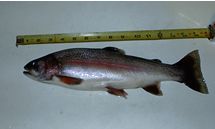 It turned out to be slightly shorter than the previous one but clearly bigger. Hmm, hmm, hmm! All three look really pretty in the fridge. I broke down my tackle, and --you guessed it-- of course there was another rainbow on the second line. Fortunately, it was only about 12", so I didn't experience the agony of cutting loose a fourth fish (three being the limit) that was huge.