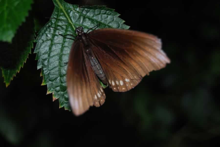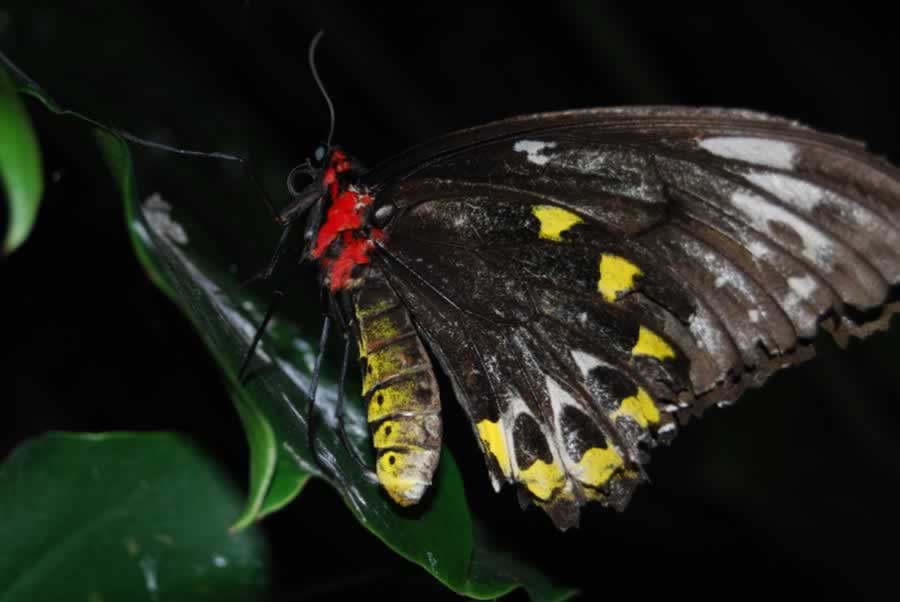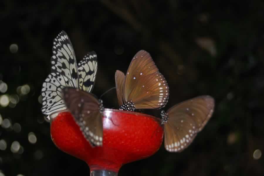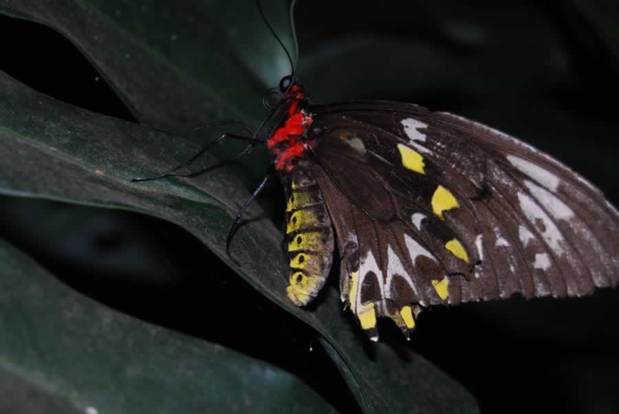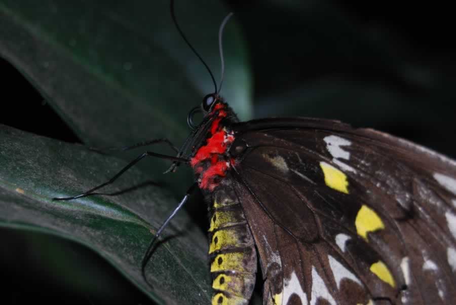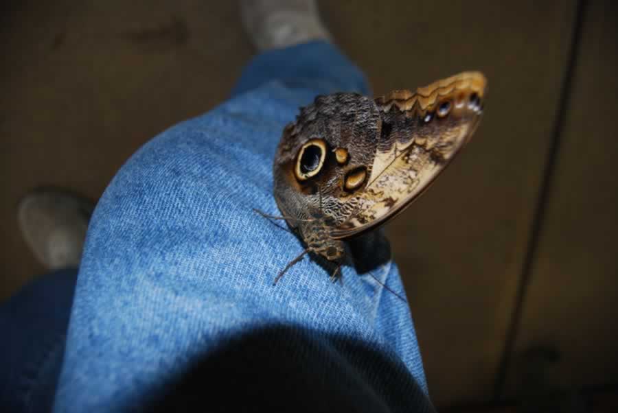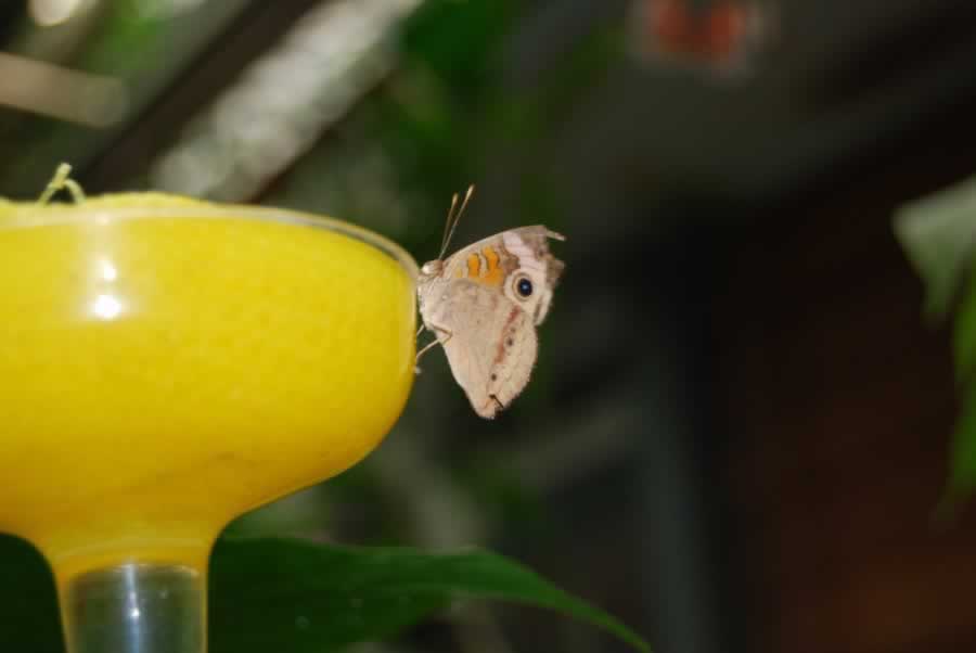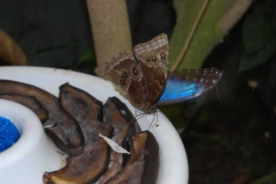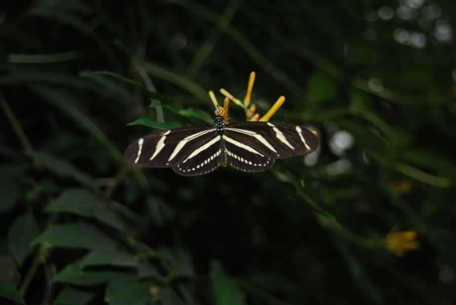Usually on the Fourth of July I watch the Boston fireworks from my rooftop, but this year the temperature topped off at 94, and I felt like getting out of town. My destination proved an ironic choice for getting out of the hot city. I picked Magic Wings Butterfly Conservatory in South Deerfield. One might reasonably suppose that such a place would be heated and humidified, but, holy cow!, they ought to issue machetes to guests for cutting through the air.
