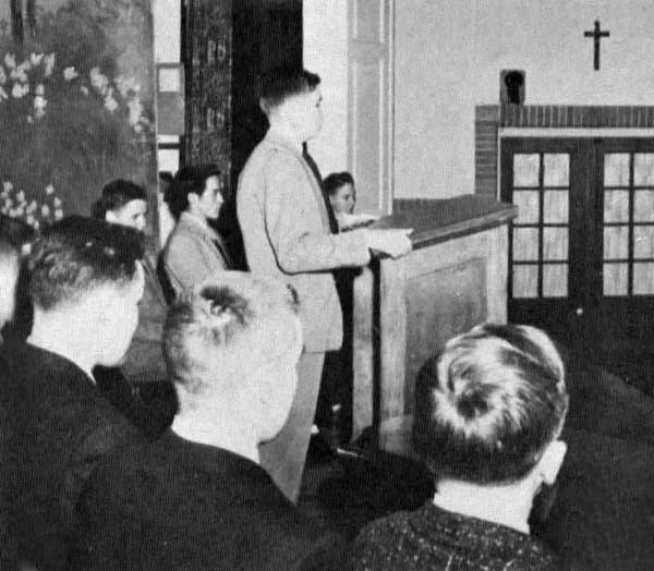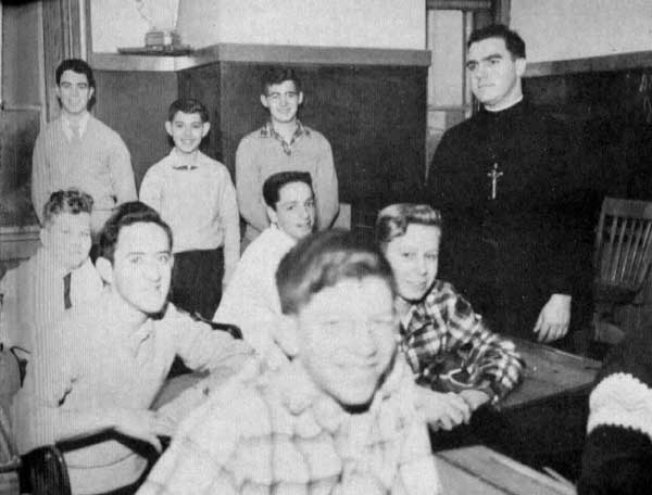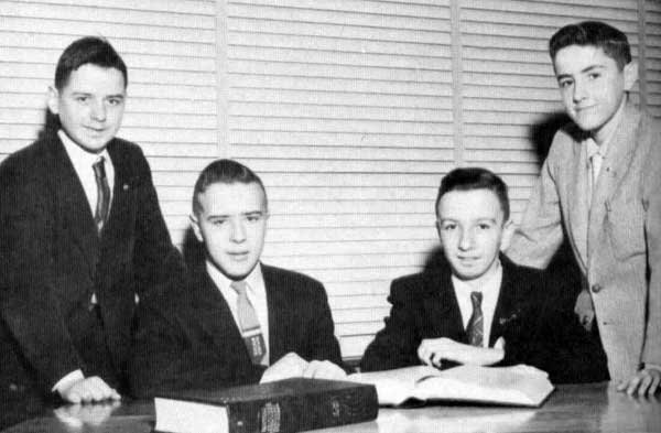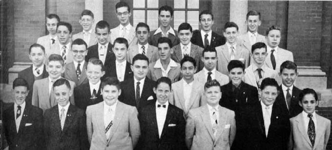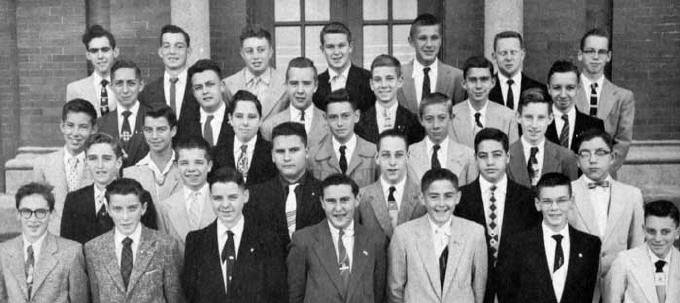 A whole big change this year, new faces, new school, new schedules and a separation from the girls we shared our first eight years with. Scared? Maybe a little, but ready for the challenge and determination to mend our ways or attempt to change the system. The former is probably what the Brothers had in mind for us. We dressed for success and readied for the four years that would help mold our future and set our goals. These four years would be some of the most memorable and enriching. (pictures from the "Class of '56" yearbook) |