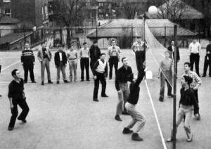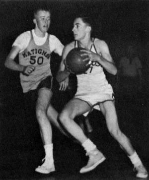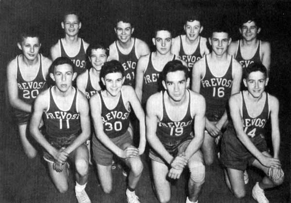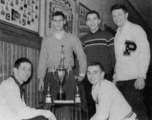 Basketball Champs: The highlight of the 1955-56 basketball season was certainly Prevost's triumph in the New England Catholic Invitation Basketball Tournament. In three consecutive days the Maple Leafs triumphed over rugged opponents, and captured the Eric MacKenzie Trophy the hard way by toppling the top seeded, undefeated defending champs Matignon in the finals. In Narry League competition, Prevost ended in second place, with a record of 12 victories and 4 losses. |