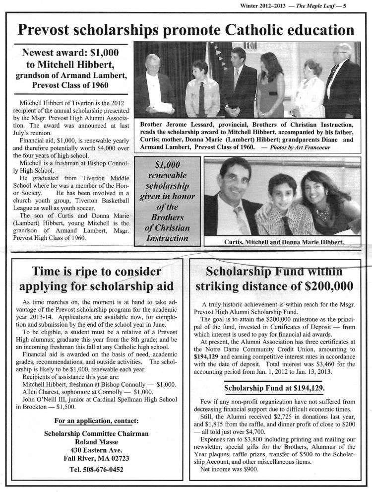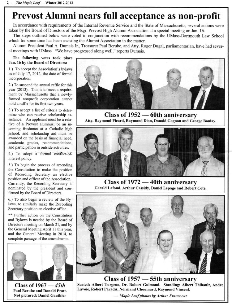 The Maple Leaf is the Msgr. Prevost High Alumni Association Newsletter and the Winter 2012-2013 edition is posted below for your viewing.