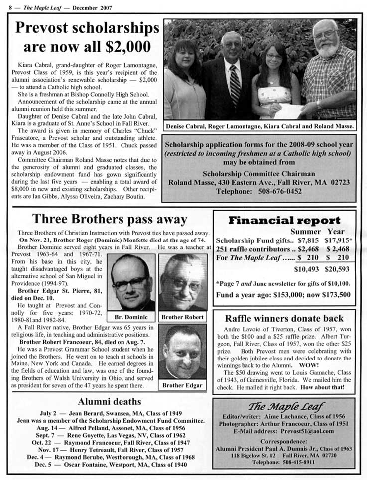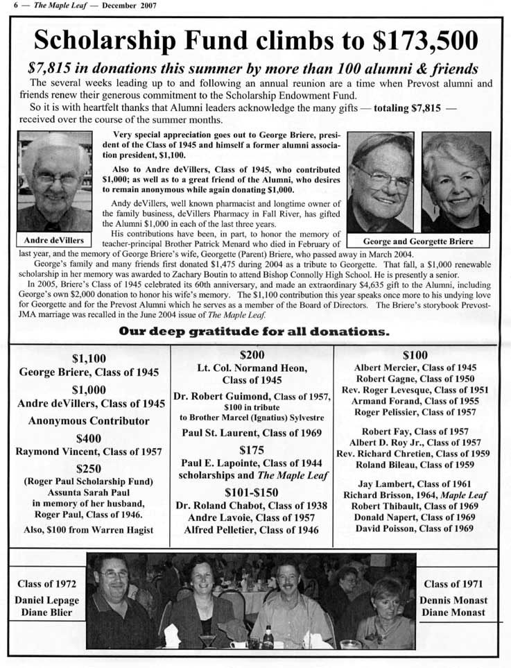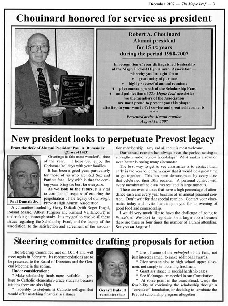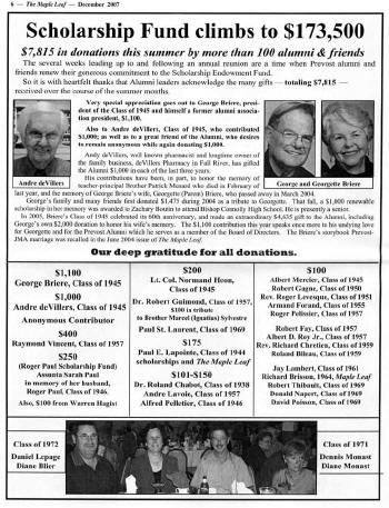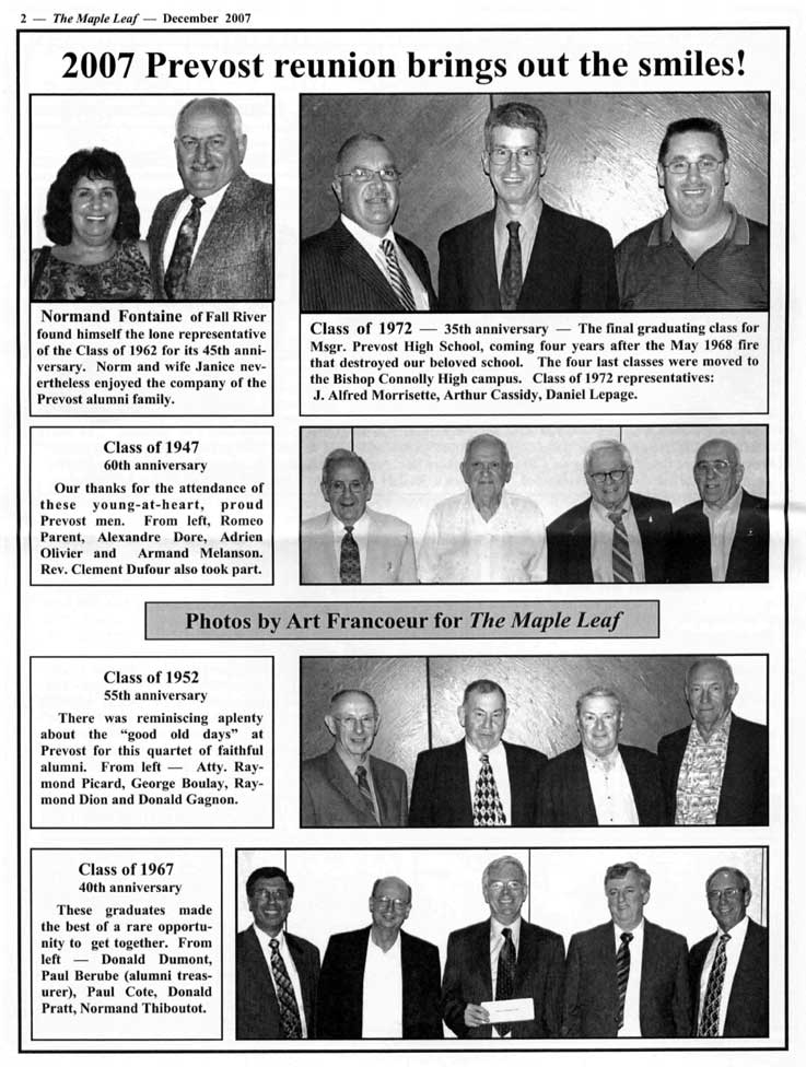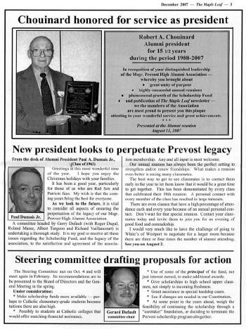 The Maple Leaf is the Msgr. Prevost High Alumni Association Newsletter and a copy of the December 2007 edition is posted below for your viewing.