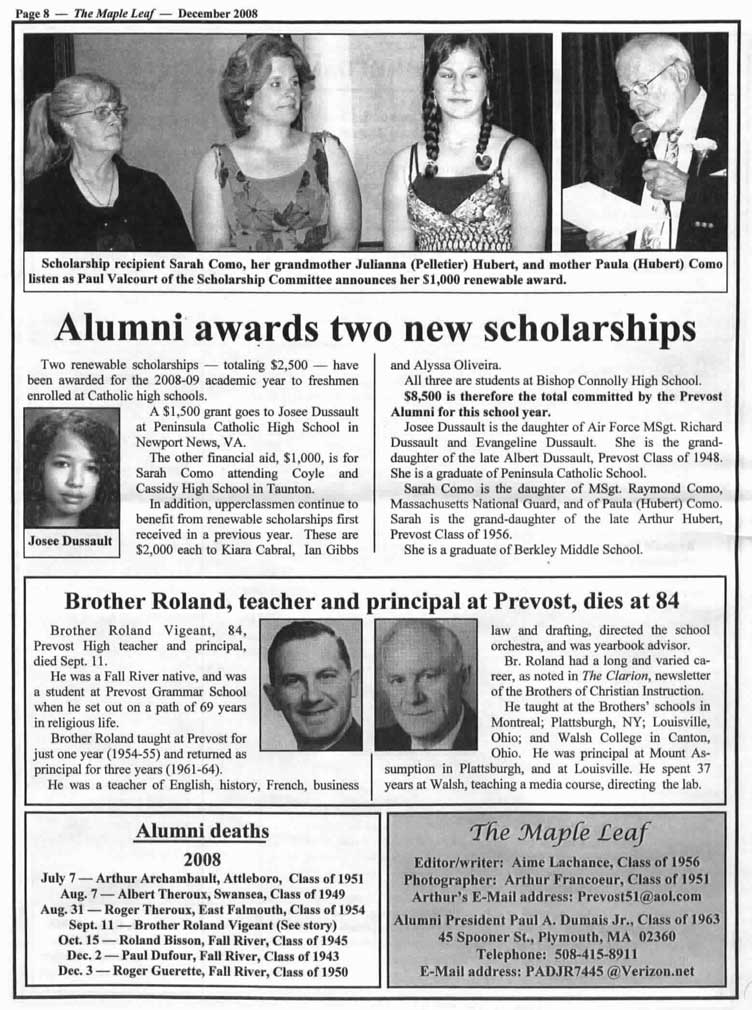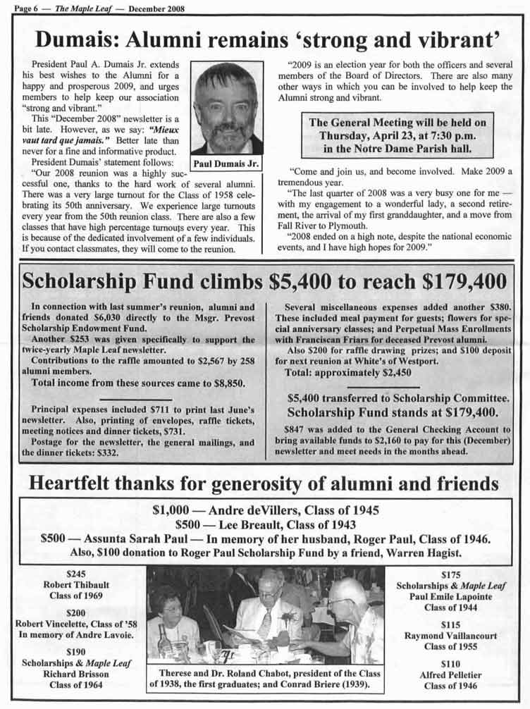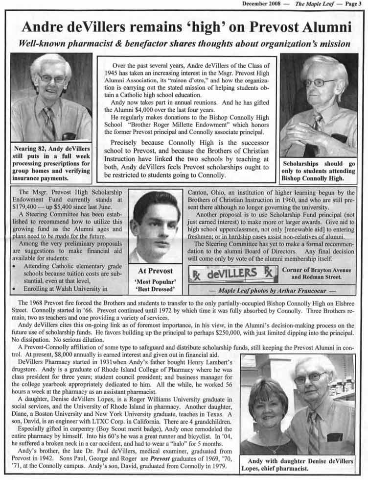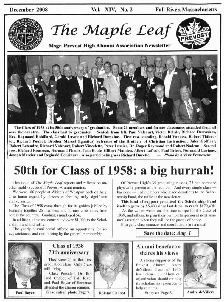The Maple Leaf is the Msgr. Prevost High Alumni Association Newsletter and a copy of the December 2008 edition is posted below for your viewing.