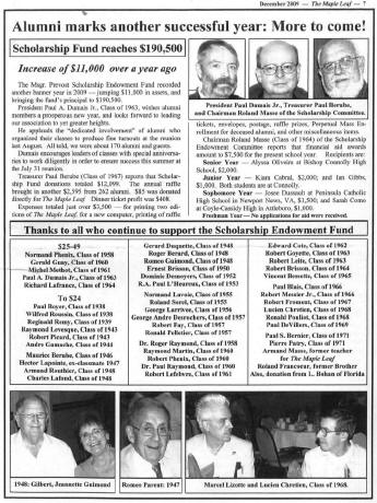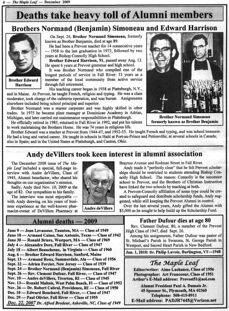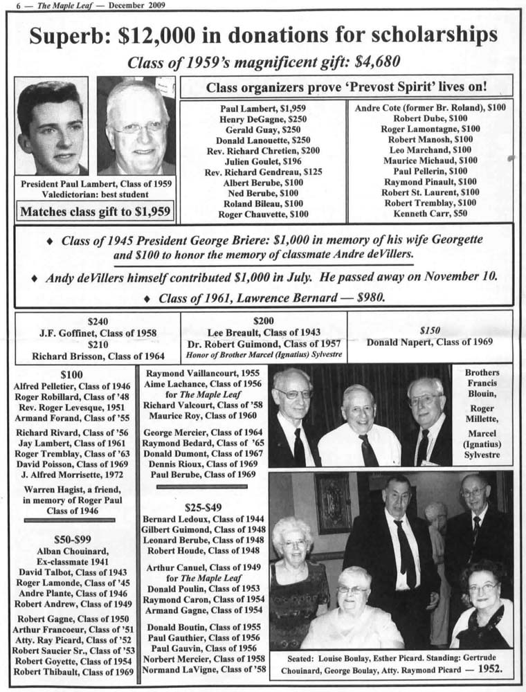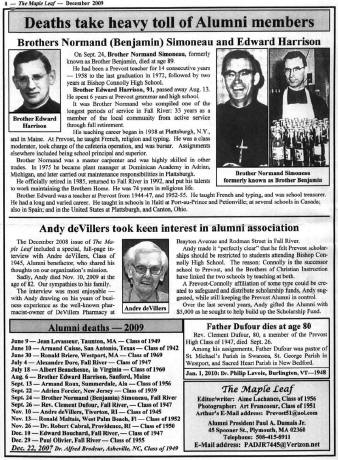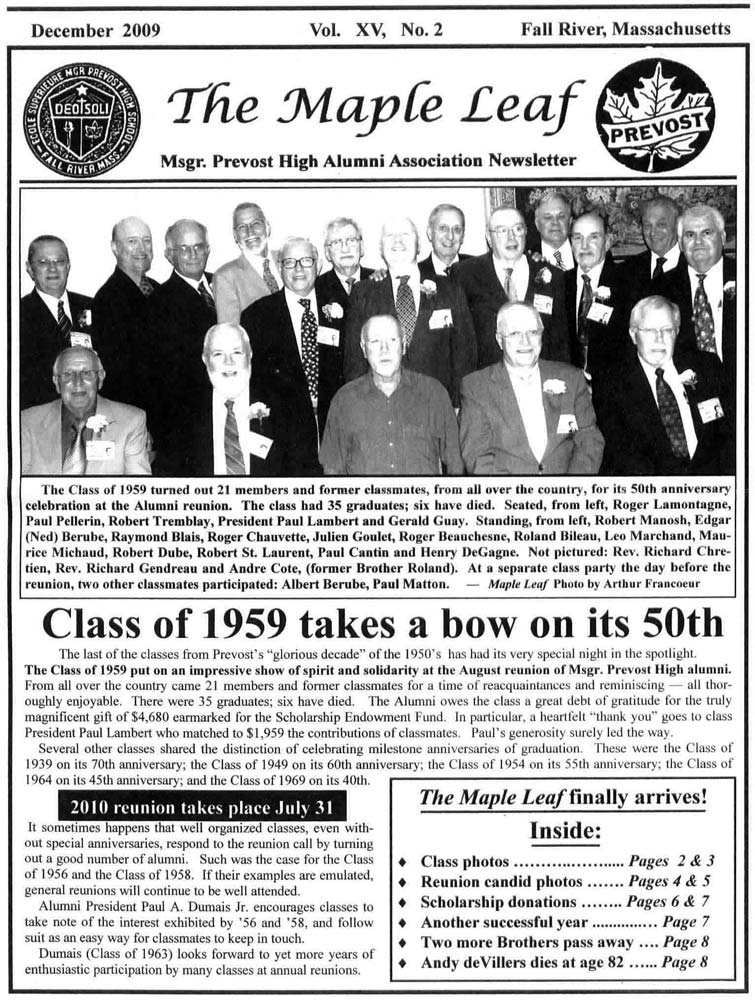 The Maple Leaf is the Msgr. Prevost High Alumni Association Newsletter and a copy of the December 2009 edition is posted below for your viewing.