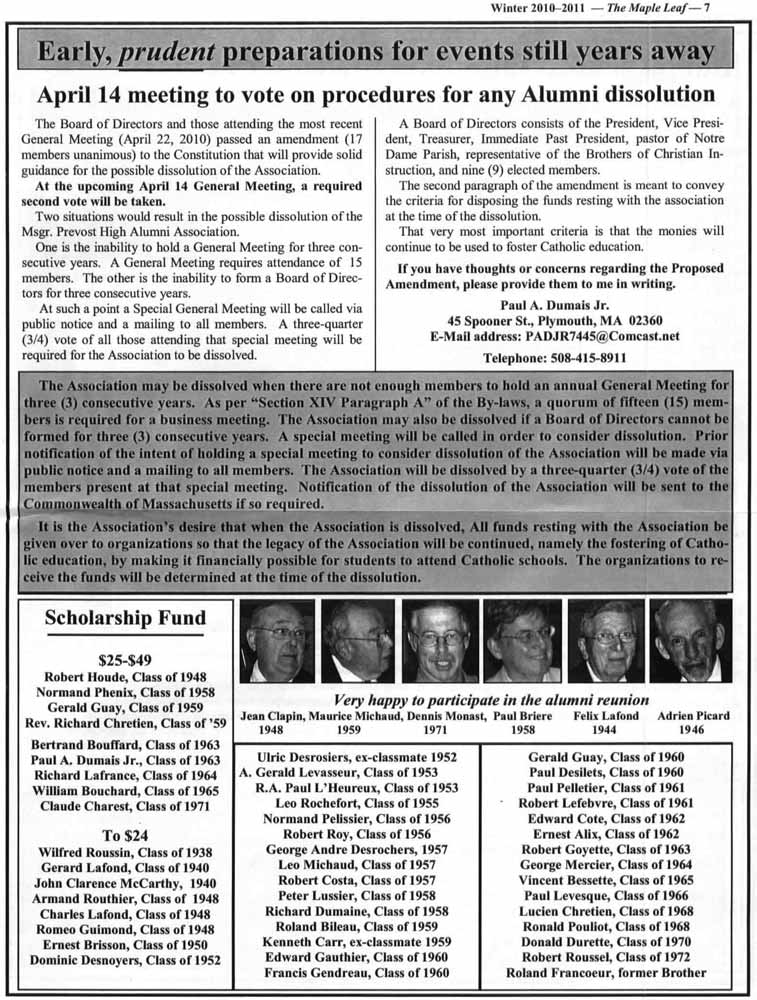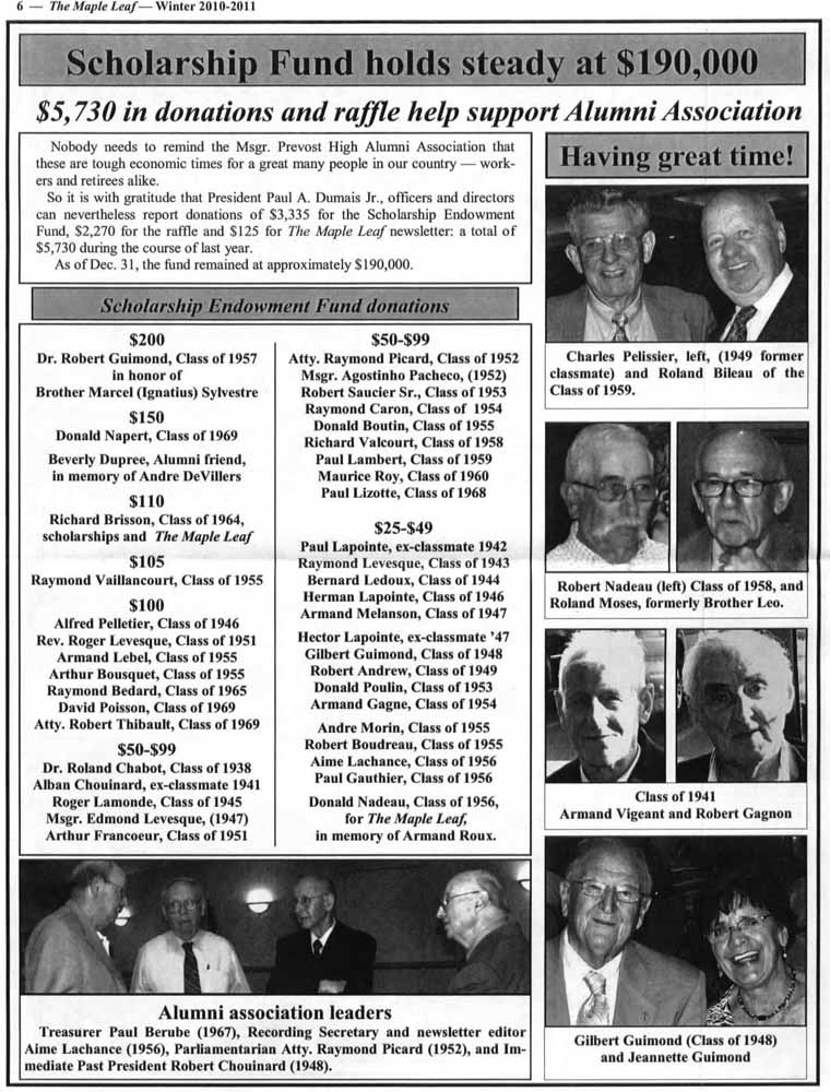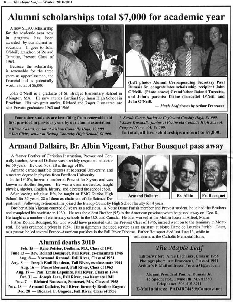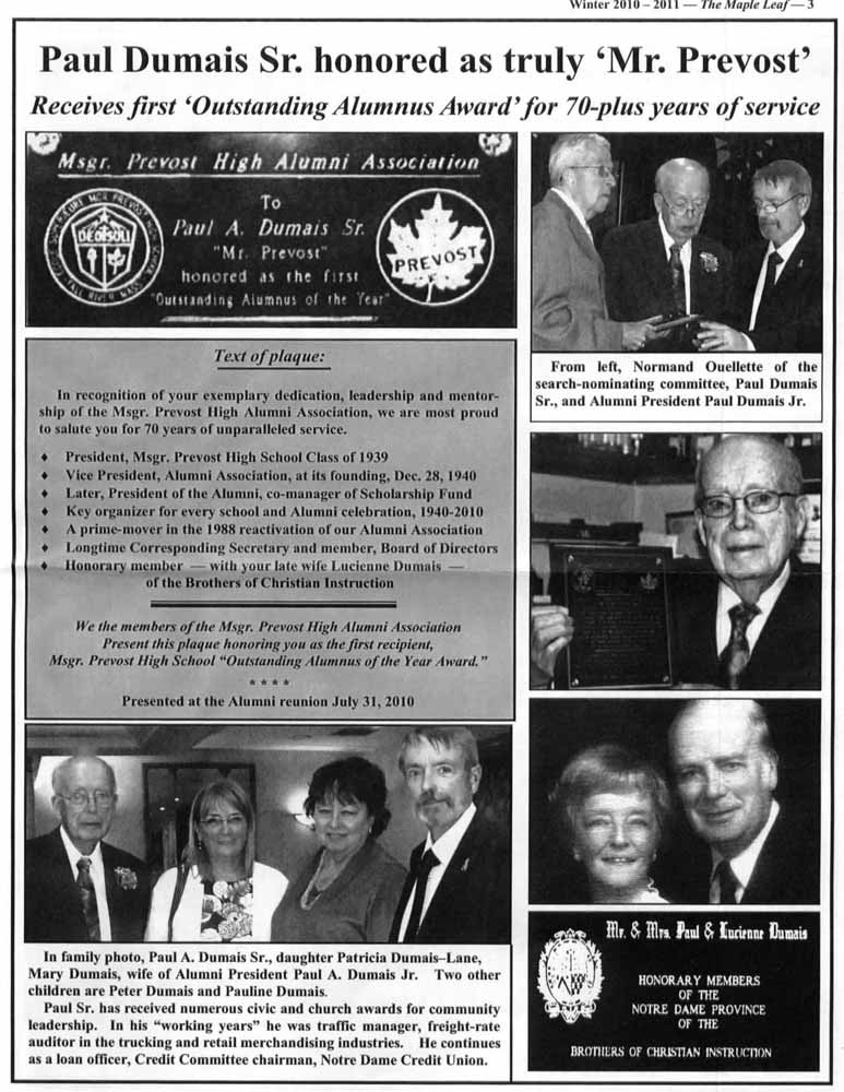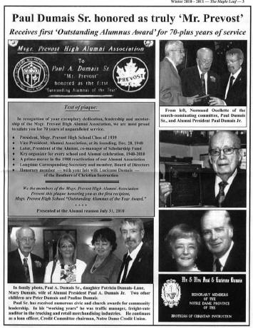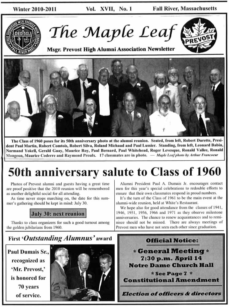 The Maple Leaf is the Msgr. Prevost High Alumni Association Newsletter and a copy of the December 2010 edition is posted below for your viewing.