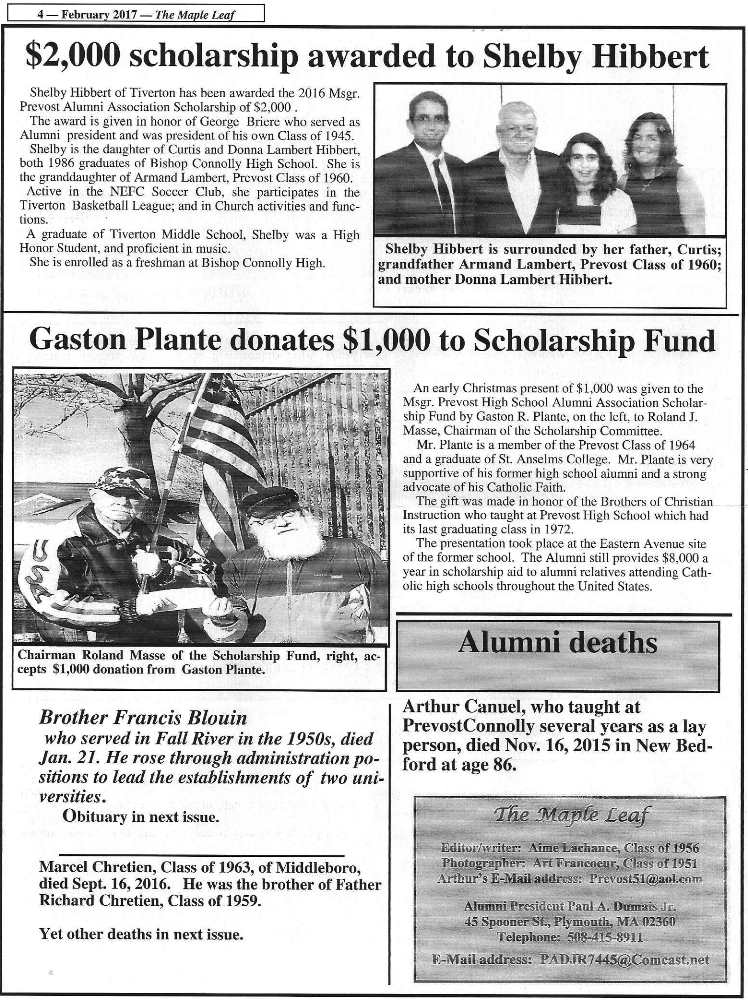 The Maple Leaf is the Msgr. Prevost High Alumni Association Newsletter and the Feb 2017 edition is posted below for your viewing.