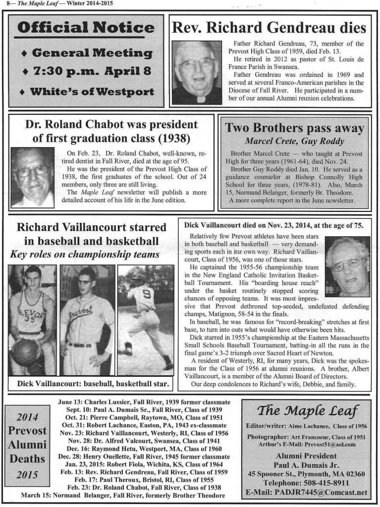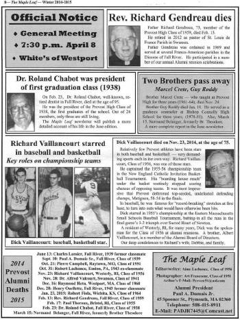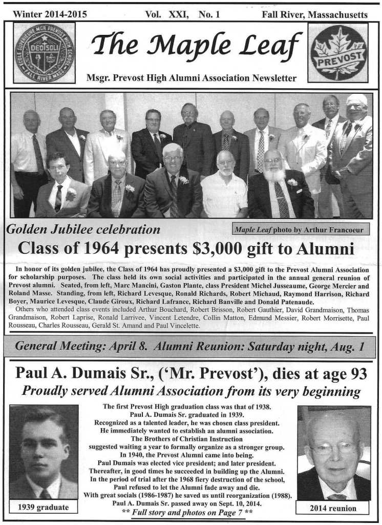 The Maple Leaf is the Msgr. Prevost High Alumni Association Newsletter and the Jan 2015 edition is posted below for your viewing.