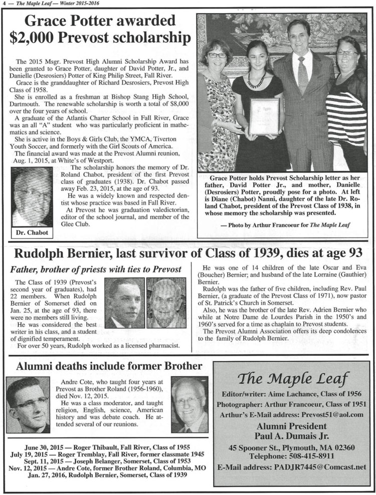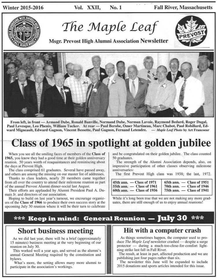 The Maple Leaf is the Msgr. Prevost High Alumni Association Newsletter and the Jan 2016 edition is posted below for your viewing.