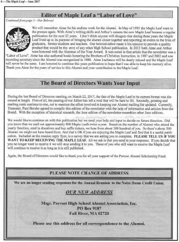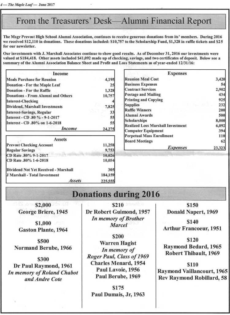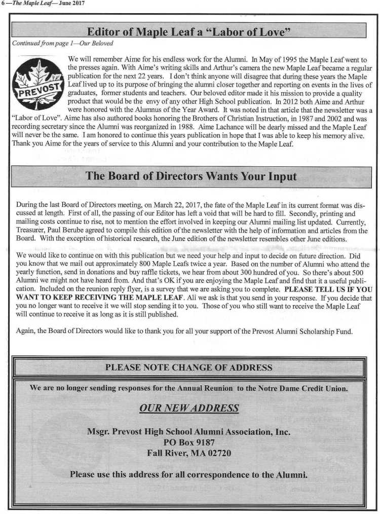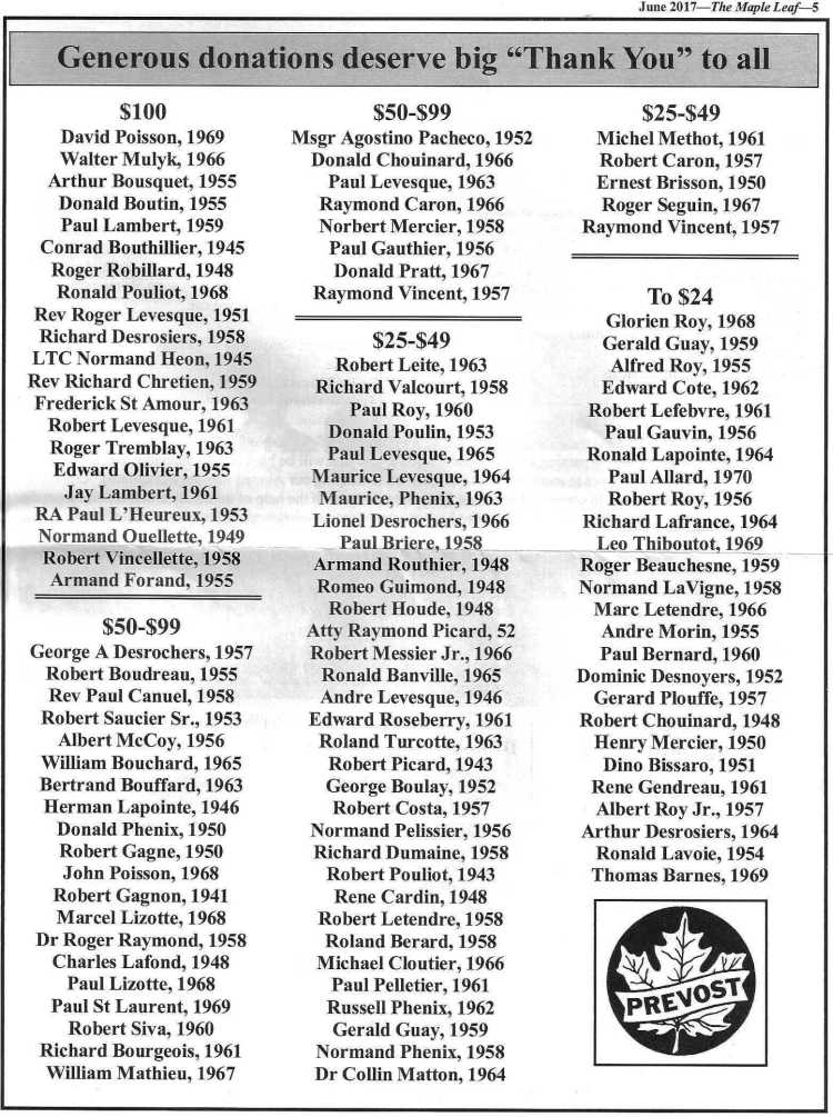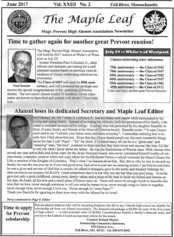 The Maple Leaf is the Msgr. Prevost High Alumni Association Newsletter and the Jun 2017 edition is posted below for your viewing.