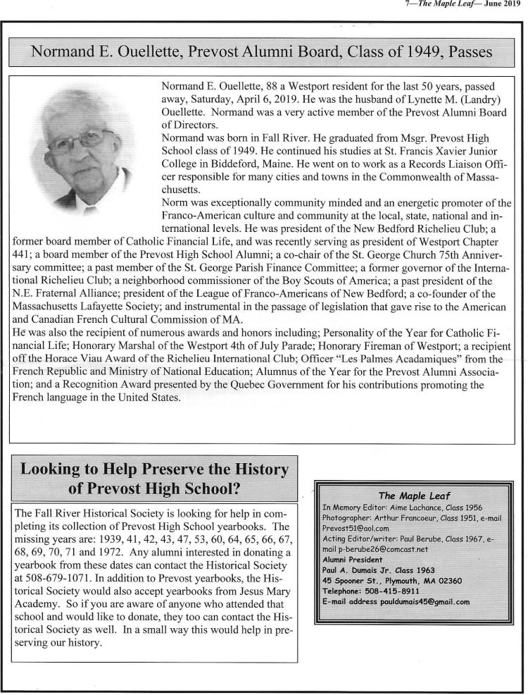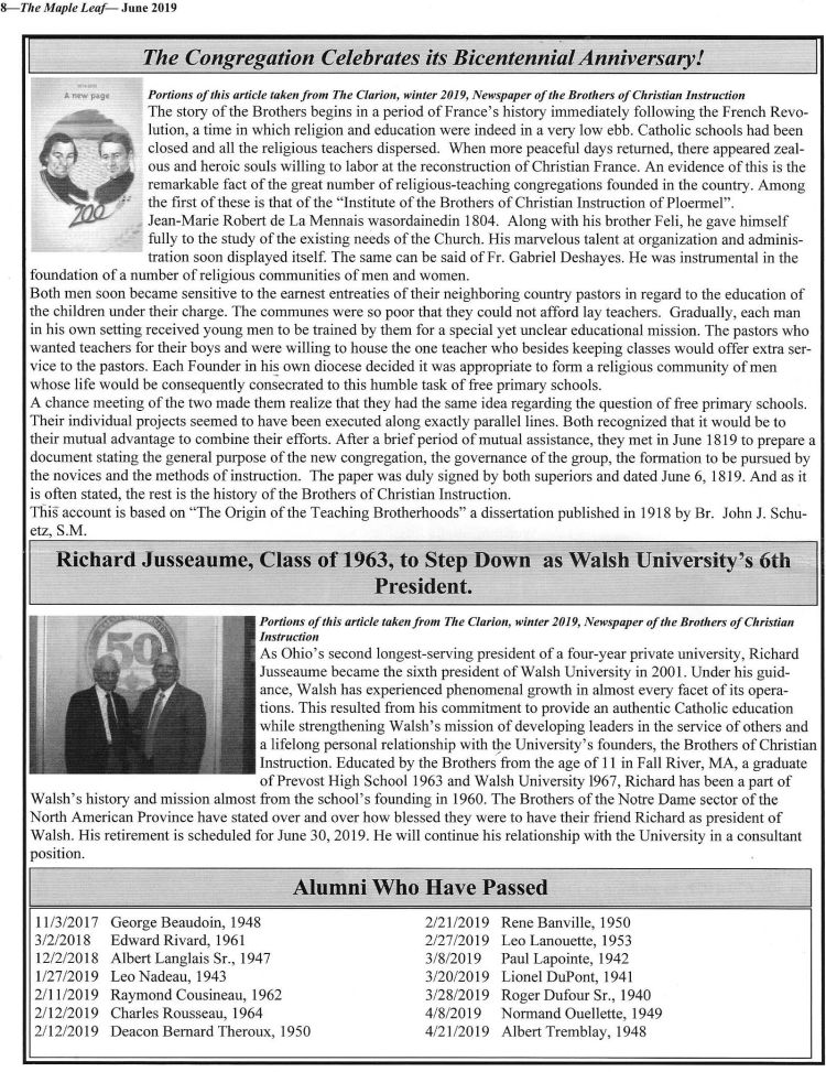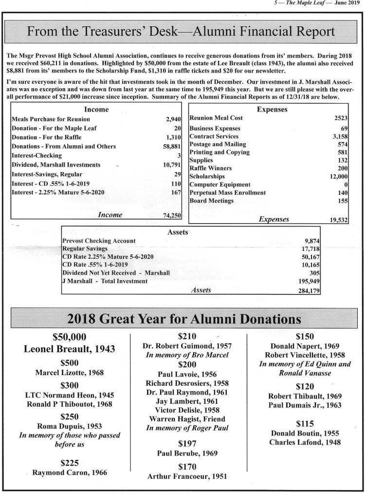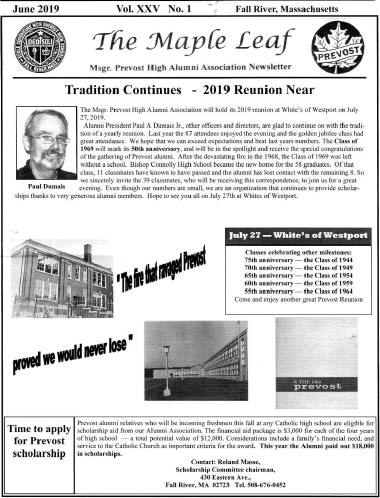 The Maple Leaf is the Msgr. Prevost High Alumni Association Newsletter and the Jun 2019 edition is posted below for your viewing.
