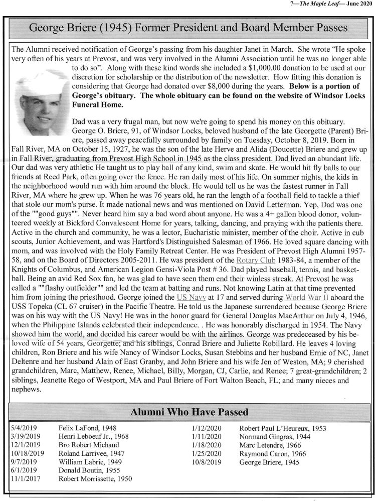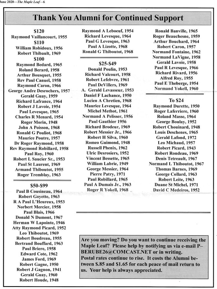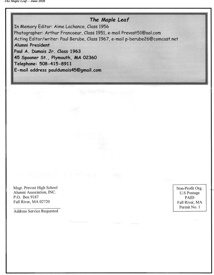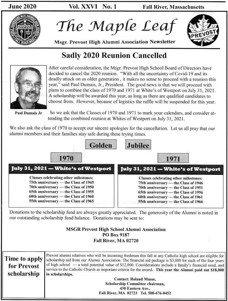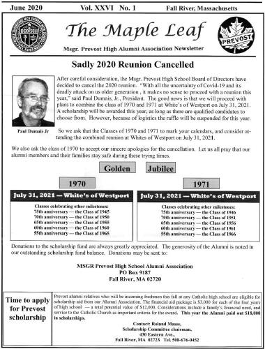 The Maple Leaf is the Msgr. Prevost High Alumni Association Newsletter and the June 2020 edition is posted below for your viewing.