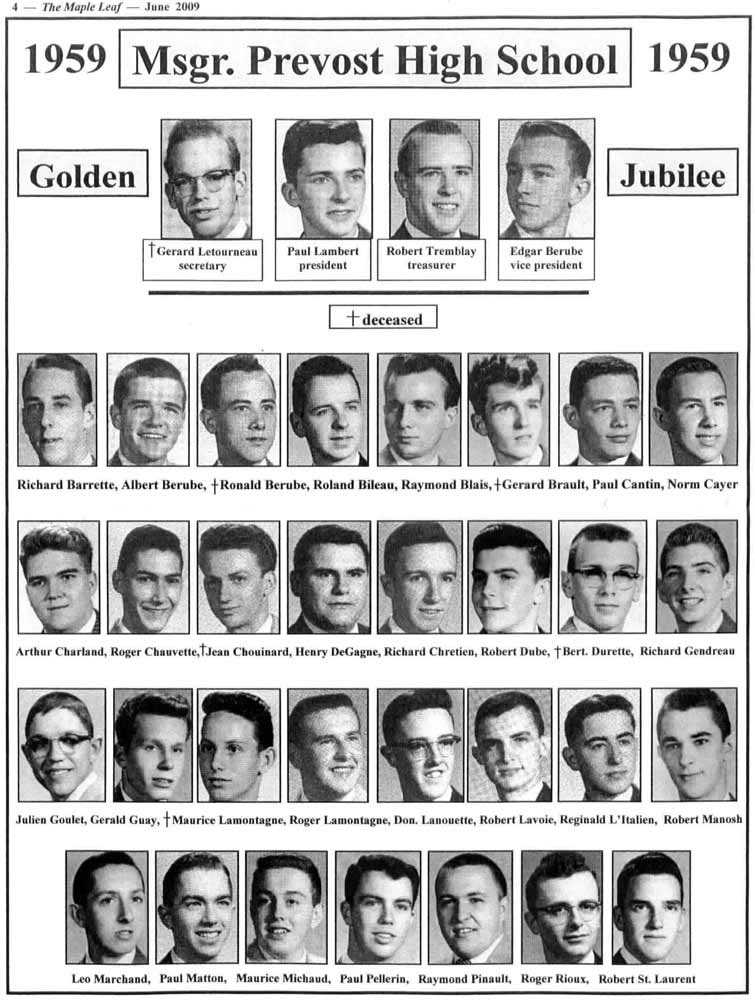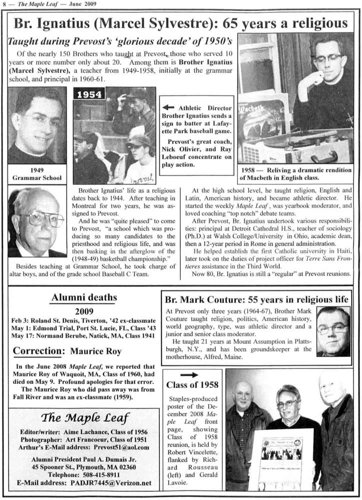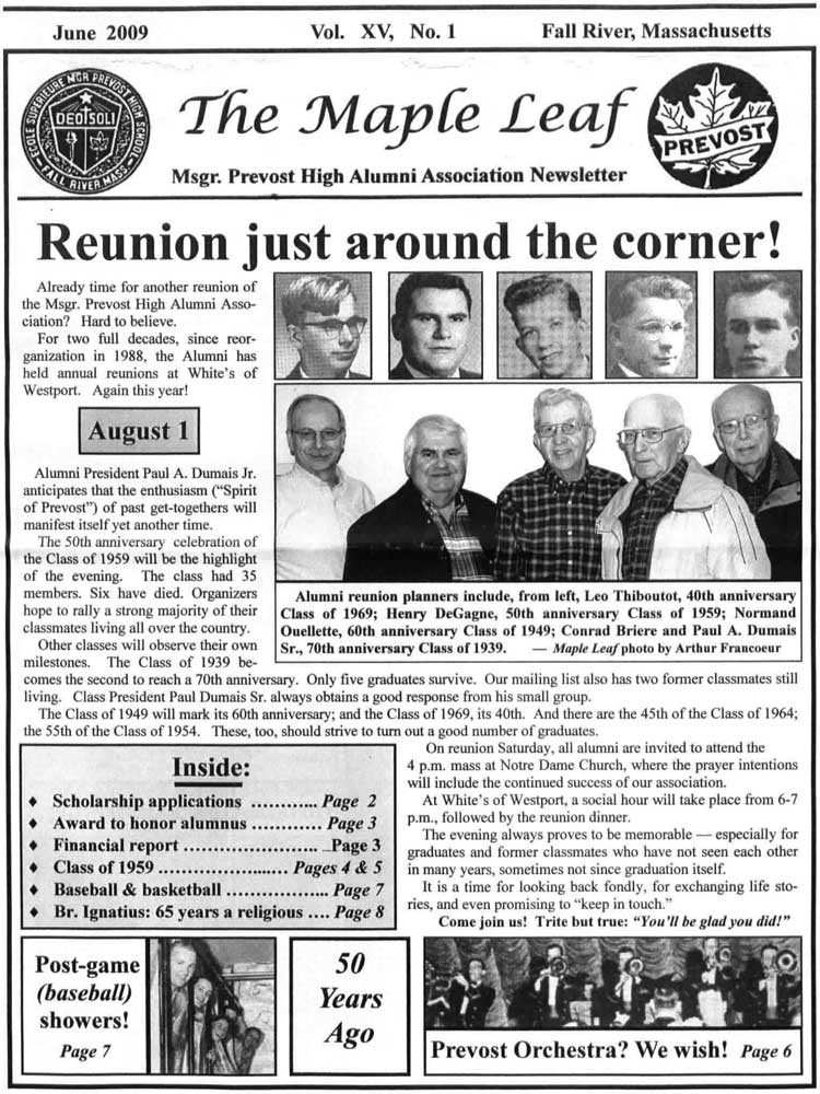 The Maple Leaf is the Msgr. Prevost High Alumni Association Newsletter and a copy of the June 2009 edition is posted below for your viewing.