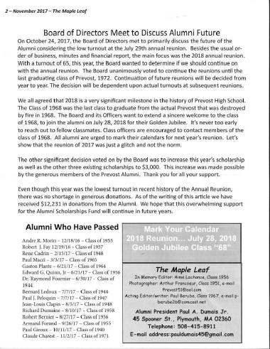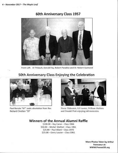 The Maple Leaf is the Msgr. Prevost High Alumni Association Newsletter and the latest copy NOV 2017 edition is posted below for your viewing.