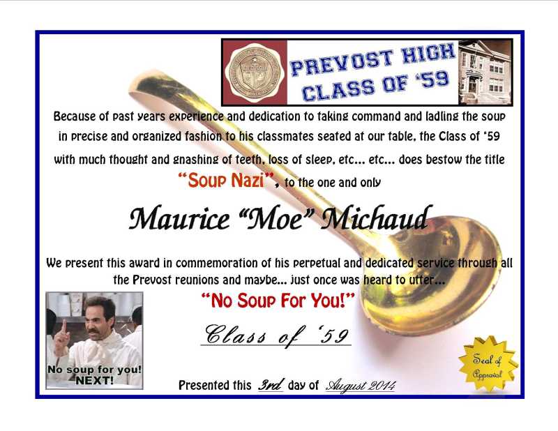 Class of '59 Get Together, August 2, 2014 at Peking Garden and Class Reunion, August 3, 2014 at White's Restaurant