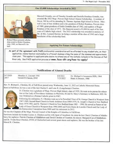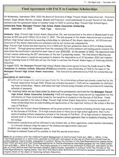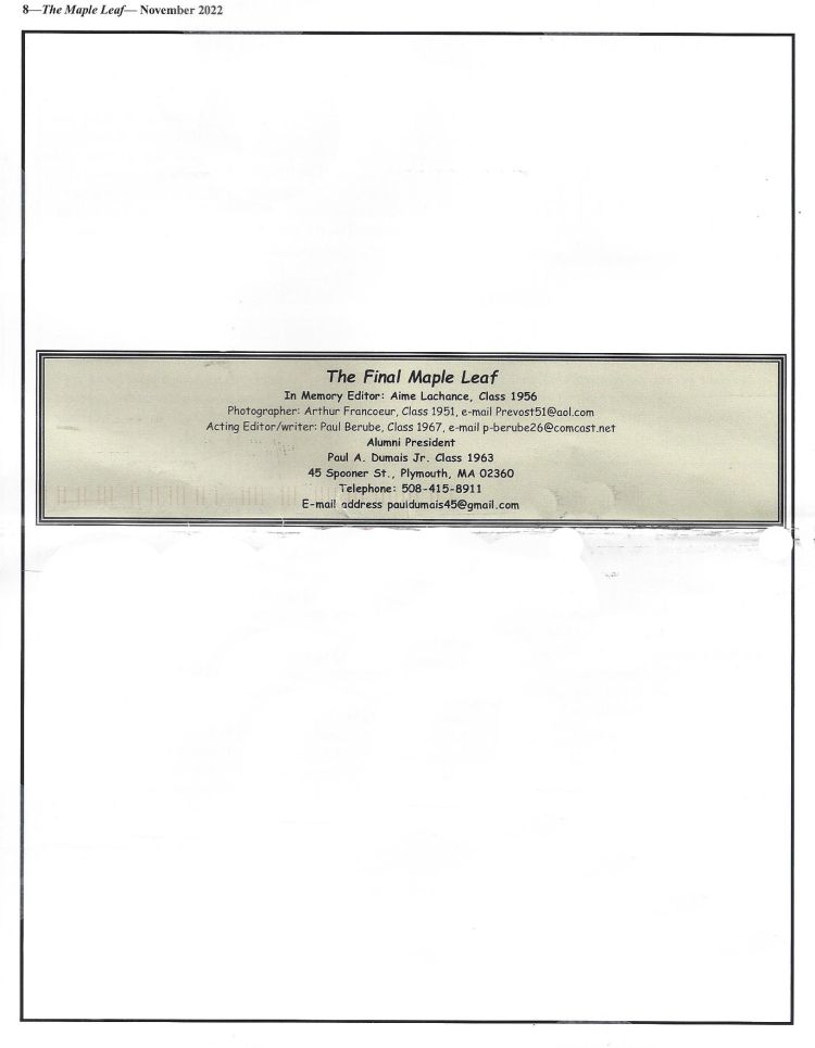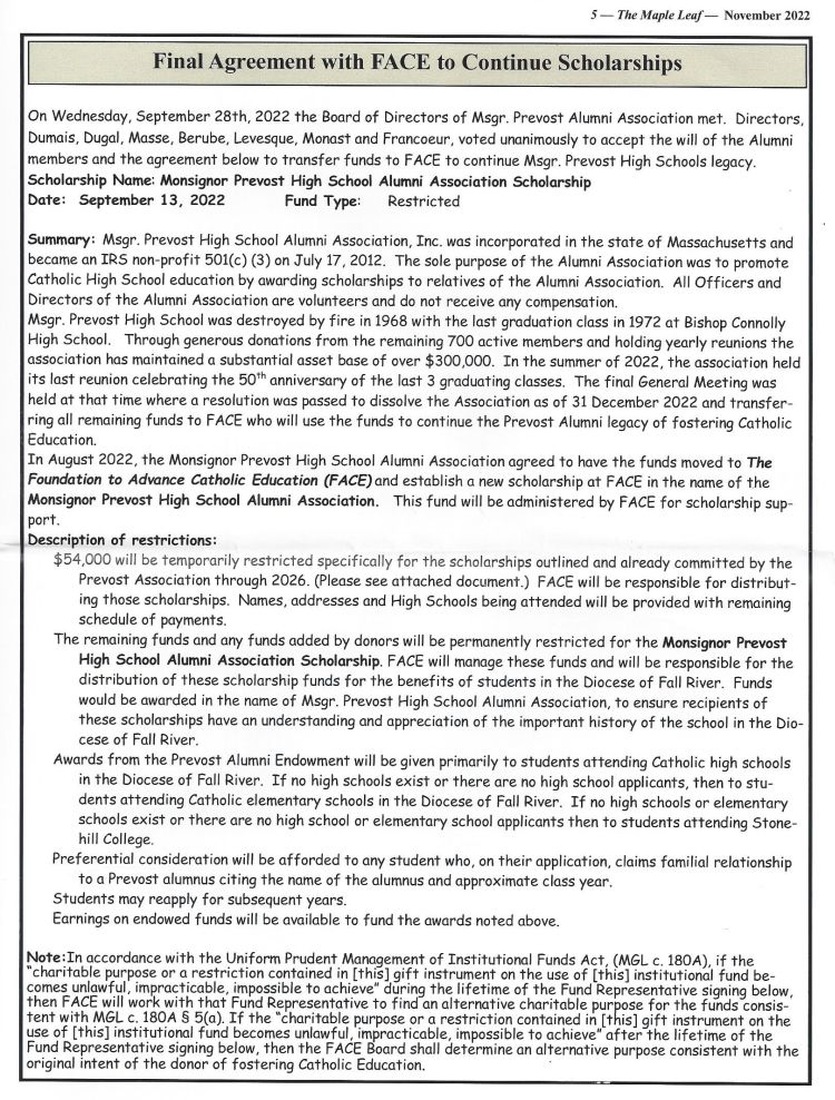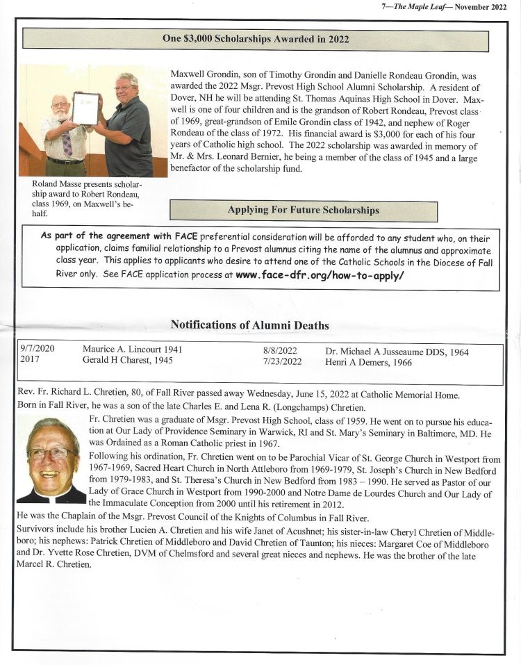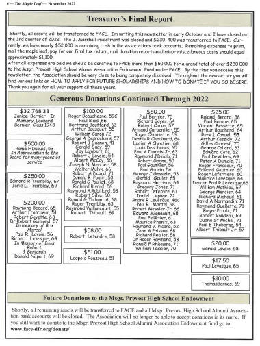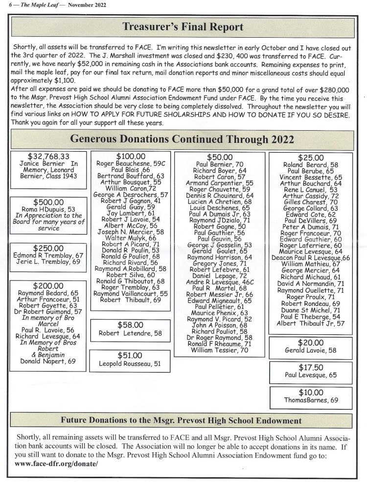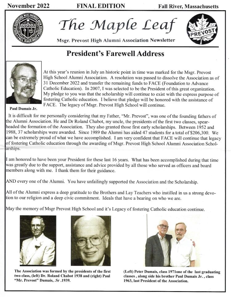 The Maple Leaf is the Msgr. Prevost High Alumni Association Newsletter and the last edition, November 2022 is posted below for your viewing.